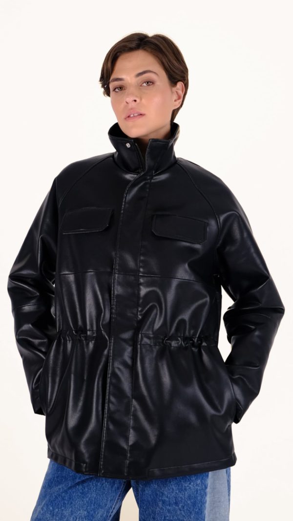 Το Cassie είναι ένα vegan leather jacket με high neck και ελαφρώς boxy γραμμή. Το λάστιχο στη μέση προσθέτει ένα διακριτικό, θηλυκό εφέ, ενώ η εφαρμογή του παραμένει άνετη και effortless. Ένα κομμάτι που αναβαθμίζει κάθε casual ή city look.